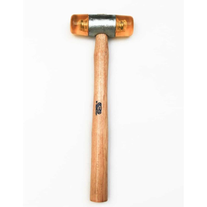 MARTELLO MAZZUOLO CON MANICO IN LEGNO TESTA CON BATTENTI PUNTALI IN TEFLON PESO: 100 grammi LUNGHEZZA TOTALE: 25 cm DIMENSIONI TESTA: 2 x 7 cm