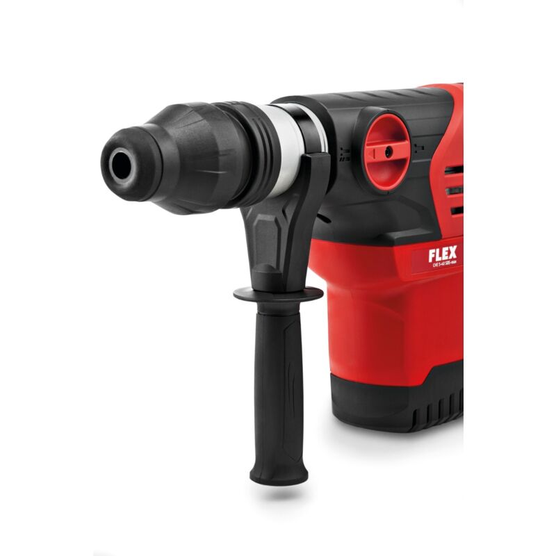 Martello perforatore e cippatore a forma di D da 1050 W con elevata energia d'impatto e basse vibrazioni Interruttore funzione con tre funzioni: foratura a percussione, scalpellatura, regolazione a scalpello Velocità variabile, regolabile in continuo da 1 a 6 con display LED Power Control Frizione di sicurezza: protegge dall'inceppamento le anime Arresto rotazione per scalpellare Impugnatura ergonomica con superficie di presa rivestita in gomma. Un ammortizzatore con cuscinetti a molla e un ulteriore smorzamento delle vibrazioni tra l'alloggiamento e l'impugnatura riducono le vibrazioni. Ideale per foratura a percussione, diam. 40 mm in muratura e calcestruzzo per giunti di iniezione e ancoraggi Per lavori di rottura per rimuovere intonaco e piastrelle