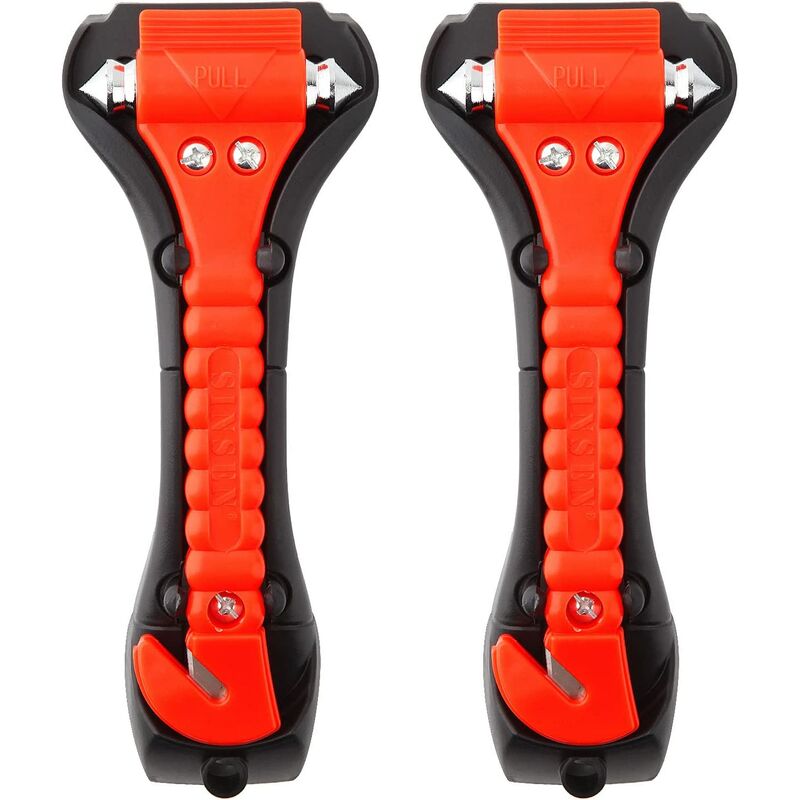 Strumento di sicurezza per auto 2 in 1 - Questo martello multifunzionale salvavita e taglia cinture di sicurezza è durevole e affidabile, consentendoti di uscire rapidamente dal tuo veicolo in caso di emergenza. Il colore arancione brillante lo rende facile da trovare al buio o se sei in preda al panico. Il robusto martello demolitore a doppia testa conica è progettato per rompere i finestrini dell'auto, in modo che tu possa scappare facilmente. La lama affilata come un rasoio è realizzata in acciaio di alta qualità che può tagliare la cintura di sicurezza abbastanza facilmente. La taglierina della cintura di sicurezza è montata in un gancio curvo sicuro. La lama in acciaio affilata come un rasoio di alta qualità taglia efficacemente le cinture di sicurezza per liberare te e i tuoi passeggeri. Il nostro strumento di emergenza per martello di sicurezza combina un portamartello protettivo con una testa affusolata, rendendolo perfetto in ogni modo. Un'aggiunta inestimabile al kit di