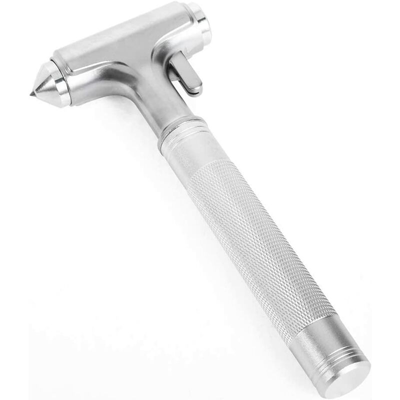 STRUMENTO DI SCARICO PER AUTO 3 IN 1 - Il martello di sicurezza con una punta appuntita e un'estremità piatta è realizzato in lega. L'affilato taglia cinture di sicurezza in acciaio inossidabile può tagliare la cintura di sicurezza per rilasciare conducenti e passeggeri nel più breve tempo possibile. La sua impugnatura è realizzata mediante fusione integrale di lega di alluminio, che lo rende durevole e ignifugo. RESISTENTE AL FUOCO E SUBACQUEO - Il motivo per cui insistiamo sulla produzione di leghe è che quando il veicolo prende fuoco, i prodotti in plastica a buon mercato lo faranno essere fuso, ma la produzione di metallo puro non pregiudica affatto l'uso, che è una garanzia più sicura per la guida. Il martello pesante e robusto consente di utilizzare 1 secondo per scappare sott'acqua. MARTELLO ERGONOMICO DI SICUREZZA - Il martello di sicurezza ha un'impugnatura antiscivolo extra lunga, che può fornire una presa migliore rispetto ad altri modelli normali e mantenere la tua mano