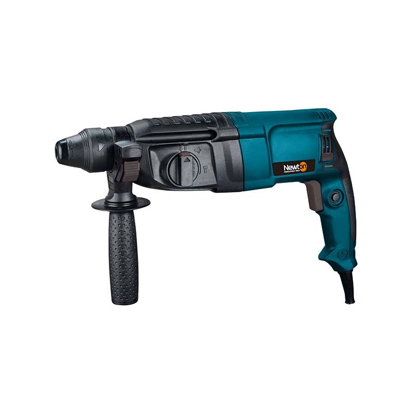 Martello tassellatore, potenza 800 w, mandrino 26 mm attacco sds-plus, forza di impatto 3 joule, velocità 0-1100 rpm in dotazione 3 punte muro (8/10/12x150 mm) + 2 scalpelli (1 a punta - 1 piatto) in valigetta