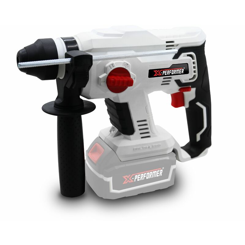 XPRH20LI-BL Il Martello tassellatore X-PERFORMER con Motore Brushless (senza spazzole) offre ottime performance e un rendimento complessivo del 30% che si traduce in un tempo più lungo di lavoro senza dover caricare spesso la batteria. In più, il Martello tassellatore X-PERFORMER con Motore Brushless permette ben 4 funzioni di avvitamento, perforazione e di tassellamento. Inoltre: Permette una capacità di foratura in legno di 28 mm, acciaio di 13 mm, cemento di 22 cm La luce a LED permette una perfetta visualizzazione del lavoro Il kit contiene gli accessori e le punte necessarie (non batteria) Attenzione: Martello Tassellatore 20V Motore Brushless X-PERFORMER 20V non comprende la batteria né il caricabatterie. Puoi completare il tuo kit acquistando la batteria XPBAT2A da 2 Ah o la più longeva XPBAT4A da 4 Ah, e scegliere tra il caricabatterie singolo (XPCHAR1) o doppio (XPCHAR2). Inoltre le batterie X-PERFORMER 20V COLLECTION sono utilizzabili in tutti gli articoli della gamma X