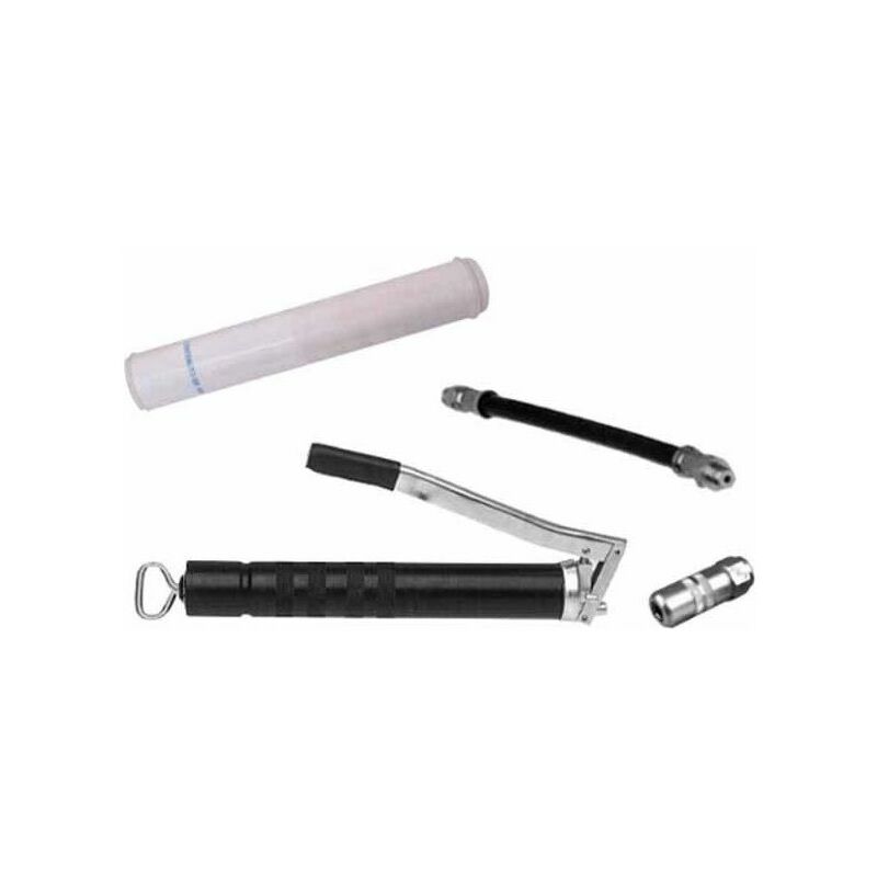 Codice: 8012947193549 Marca: A&G MARTINELLI. Corpo acciaio trafilato verniciato Arresto asta automatico - Pressione atm 300 Adatto per grasso sfuso e cartucce Composizione: 1 ingrassatore a levag 600 testina, tubo gomma, cartuccia g 600 mm 53
