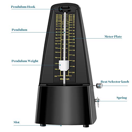 MARTISAN Metronomo Meccanico di Alta Precisione per Tutti i tipi di Strumenti Musicali per Pianoforte, Grancassa, Violino, Chitarra e Strumenti a Fiato, Nero