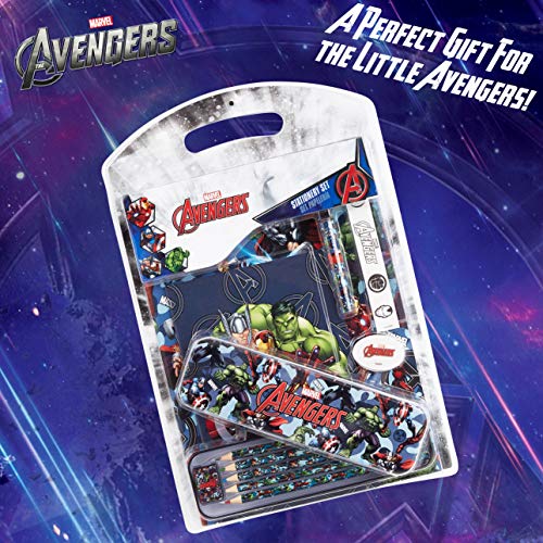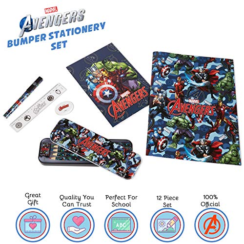 Marvel Kit Cancelleria Scuola Elementare, Materiale Scolastico dei Supereroi Avengers con Quaderno, Astuccio Portapenne e Matite Colorate, Set Regalo Back To School per Bambini