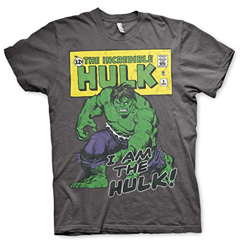Marvel Comics Licenza Ufficiale Distressed I Am The Hulk Maglietta (D.Grigio), XX-Large