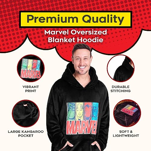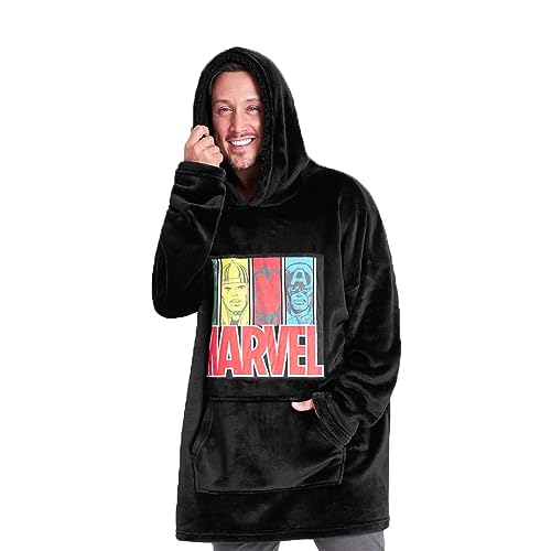 Marvel Felpa Uomo con Cappuccio - Felpe Oversize Uomo in Pile (Nero)