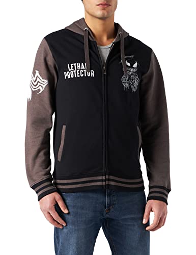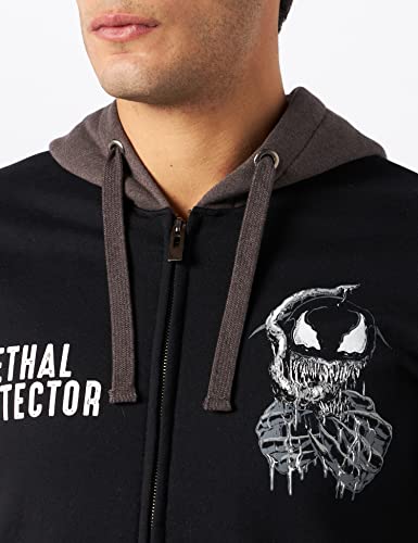 Felpa con cerniera e cappuccio di tipo universale MEVENOXTD021_XXL, VENOM "VENOM LETHAL PROTECTOR", colore nero, maniche e cappuccio antracite, taglia XXL