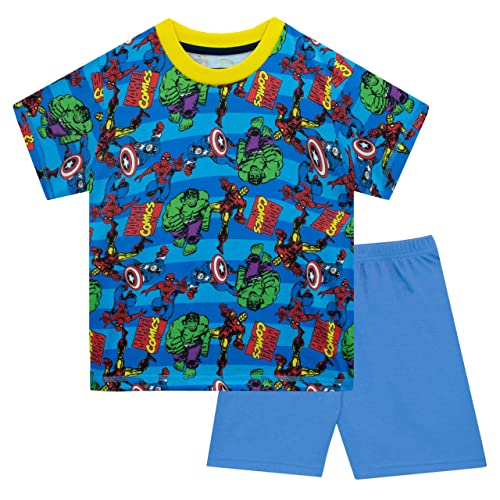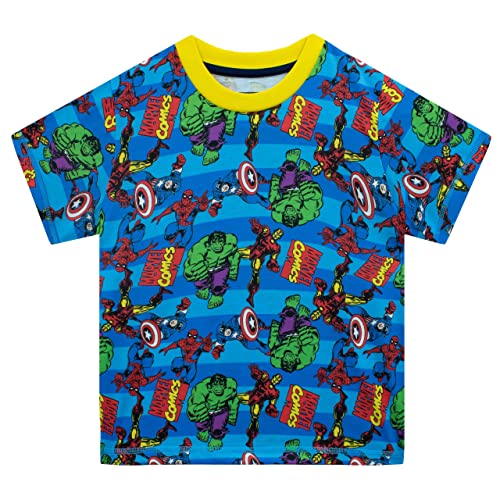 Marvel Pigiama Avengers 2 Pezzi | Pigiama Ragazzi Iron Man, Captain America, Spiderman | Pigiama Supereroi per Bambini Multicolore 8-9 Anni