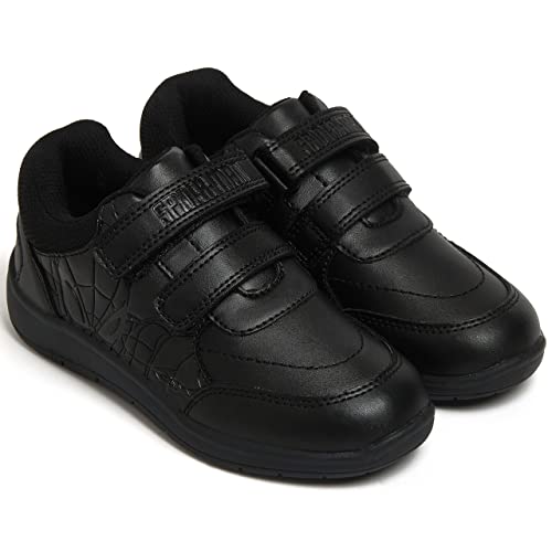 Merce Marvel con licenza ufficiale. Un paio di scarpe da scuola nere per bambini, con Spiderman su un lato e il suo nome stampato sulla chiusura a strappo in velcro