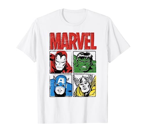 Marvel Vintage Squares Iron Man, Hulk, Captain America, Thor Maglietta