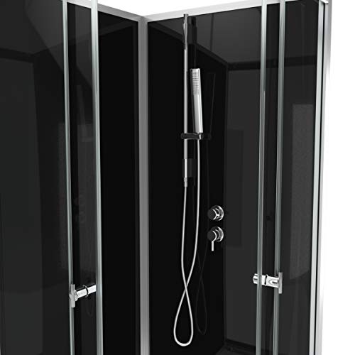 MARWELL Doccia completa Black Reef 80 x 80 x 195 cm - Doccia angolare con ingresso angolare - Box doccia con profili in alluminio di alta qualità - Altezza entrata 15 cm