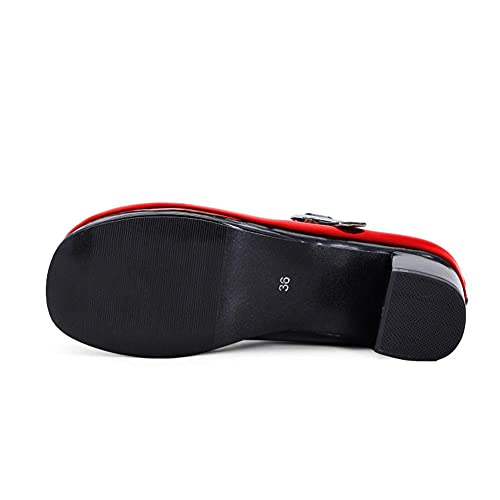 * Elemento alla moda* Le scarpe Mary Janes sono caratterizzate da tacco medio spesso, fibbia, materiale superiore in pelle sintetica (facile da pulire), punta rotonda, chiusura con fibbia.