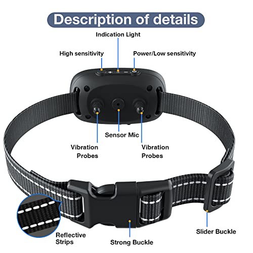 【Sensibilità Regolabile】 Questo collare anti abbaio per cani è dotato di pulsanti "+ -" utilizzati per regolare la sensibilità appropriata del livello 1-7 in base alla natura e al comportamento dei vostri cani. Più alto è il livello di sensibilità, più facile è l'attivazione del collare. Livello predefinito 4 all'accensione.