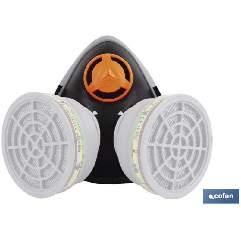 Maschera in silicone Doppio filtro. EN140. CE 0099. Filtri non inclusi.