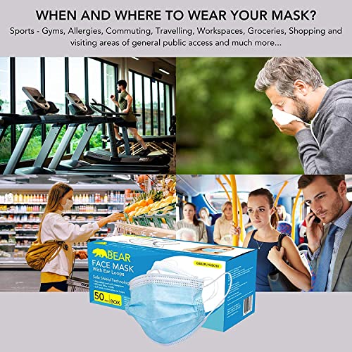 Maschera civile a 3 strati, 3 strati, in polipropilene, per uso generico, uso generico, per pendolare, fare shopping e all'aperto, confezione da 50