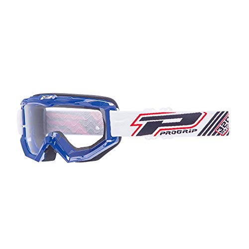 Maschera cross progrip 3201 blu visiera trasparente anti-appannamento-anti uv