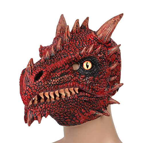 Maschera Dinosauro di Halloween,Maschera di Lattice Realistica per Travestimenti per Halloween,Carnevale,Cosplay,Spaventose Maschere per Adulti e Bambini(Drago di Fuoco Rosso)
