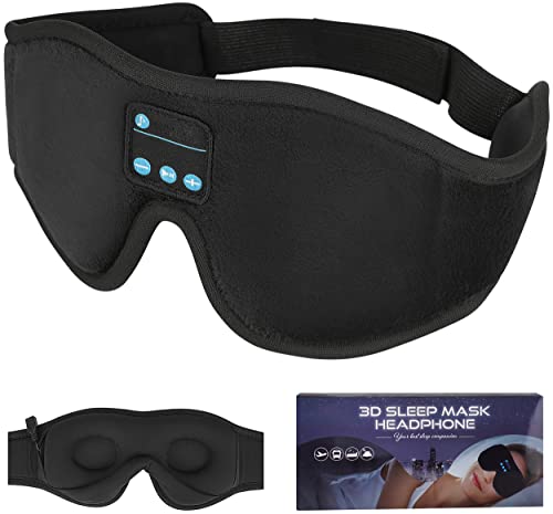 Maschera per Dormire Bluetooth, Uomo Donna Cuffie per Dormire Altoparlanti Stereo HD Integrati,Sonno Cuffie Fascia Sportiva per Sport, Traversine Laterali, Viaggi Aerei