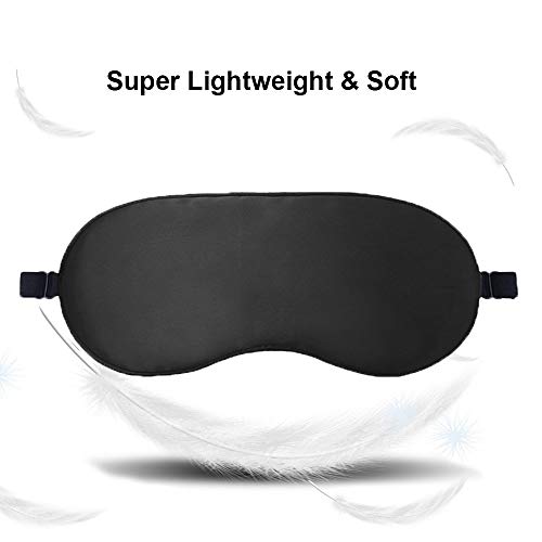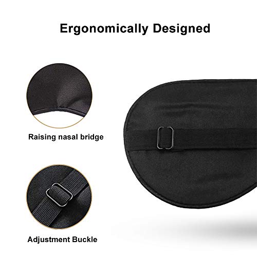 Maschera per Dormire, Joyguard Maschera per Occhi Seta Naturale+Pura Cotone Qualità Anti-luce Regolabile Comodo Maschera per Dormire con Tappi per Orecchie e Confezione da Viaggio-Nero-2 Pack
