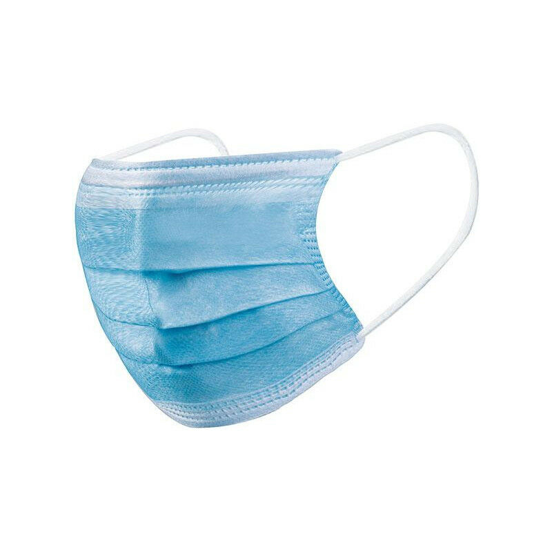Maschera igienica senza standard (confezione da 50) Caratteristiche: - Per coprire la zona della bocca e del naso - Nastro rotondo - Taglia unica - Materiale: polipropilene - Peso: 2,7 g / maschera - Dimensioni: 17,5 x 9,5 cm - Colore: blu. bianco.