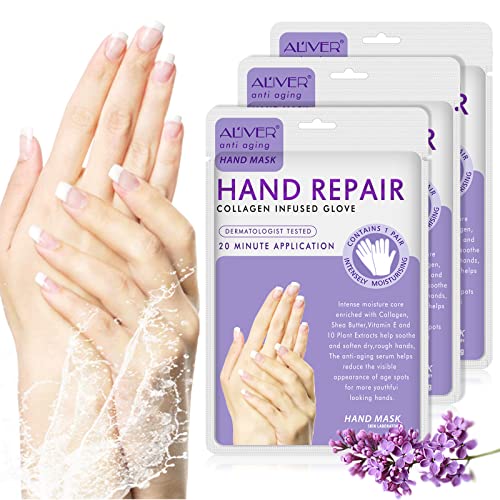 Maschera Per Le Mani Guanti, 3 Paia Maschera Idratanti Per Mani Esfoliante al Lavanda con Estratti Vegetali Naturali, Collagene, Sbiancanti e Antietà, Riparazione Della Pelle Ruvida