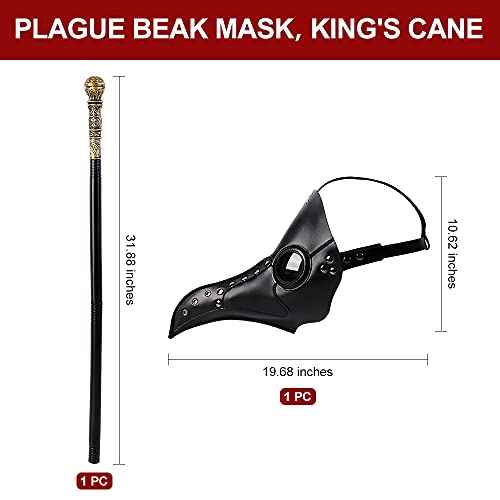 Puntelli per costume di Halloween: la confezione include 1 maschera per medici della peste, 1 canna da re, 1 mantello con cappuccio e 1 paio di guanti neri, la combinazione perfetta per feste di Halloween, mascherate, Cosplay.