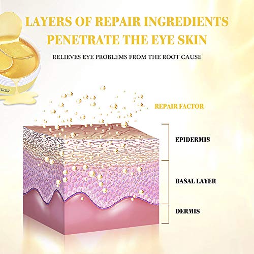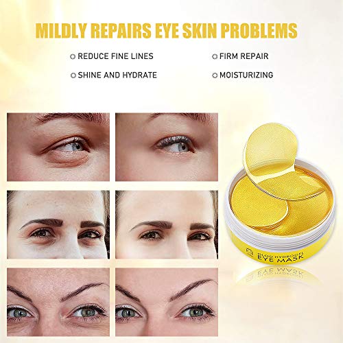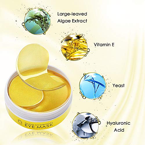 Maschera per gli occhi, Eye Patch, Maschera d'occhio del collagene, Crystal Gold Collagen Eye Mask, Maschere Eye Gel Patches, Idratante, anti-età, Ridurre Borse, Occhiaie e Puffiness, 60 Patches(oro)