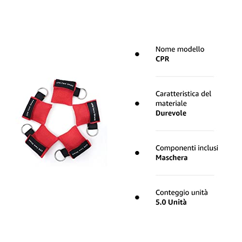 VALORE INCREDIBILE:Include 5 pacchetti di maschera CPR con scudo a forma di valvola a senso unico e anello portachiavi e ordinatamente immagazzinati all'interno di una sacca colorata in nylon che è possibile trasportare ovunque con te o mettere all'interno della scatola di emergenza, in un prezzo basso e intuitivo a tutti i tempi con grande qualità e grande valore