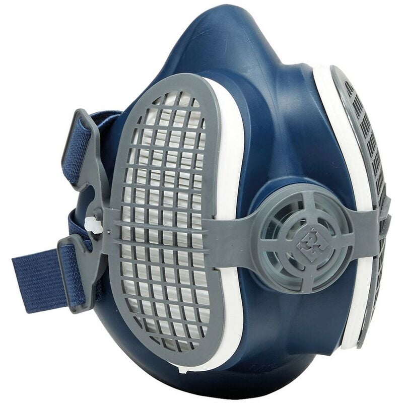 In tpe (elastomero termoplastico), valvola in nylon. ampia valvola di non ritorno centrale, riduce al minimo la resistenza respiratoria di chi la utilizza e la formazione di umiditã all'interno della maschera. fascetta antiscivolo regolabile. efficace co