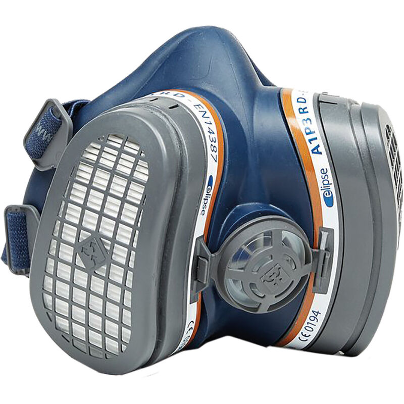 In TPE (elastomero termoplastico) di grado medicale senza lattice e silicone. Valvola di non ritorno centrale, riduce al minimo la resistenza respiratoria di chi la utilizza e la formazione di umidità all'interno della maschera. Fascetta antiscivolo regolabile. Efficace contro vapori derivanti da verniciature a solventi e dall'utilizzo di arsenio, iodio, cloro o formaldeide. Certificata CE EN140:1998, filtri sostituibili A1P3 e FFA1P3 contro gas e vapori organici con punto ebollizione >65°C. Temperatura utilizzo -5°+55° C.