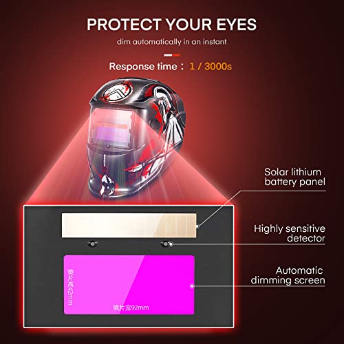 Maschera Saldatura Autoscurante, 9-13 DIN regolabile, Maschere per Saldatura con 5 Lenti di Ricambio, Casco da Saldatura ad Energia Solare, per MIG, MAG (Cavaliere)