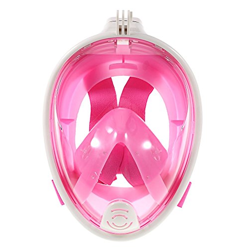 Maschera da snorkeling, Dewenxi Tech maschera full face con visione 180°, snorkel mask full dry, Maschera Antiappannante, Maschera da Immersioni, Maschera Subacqua Antiperdita con Sistema Dry Top, per Gopro Camera (Rosa, S/M)