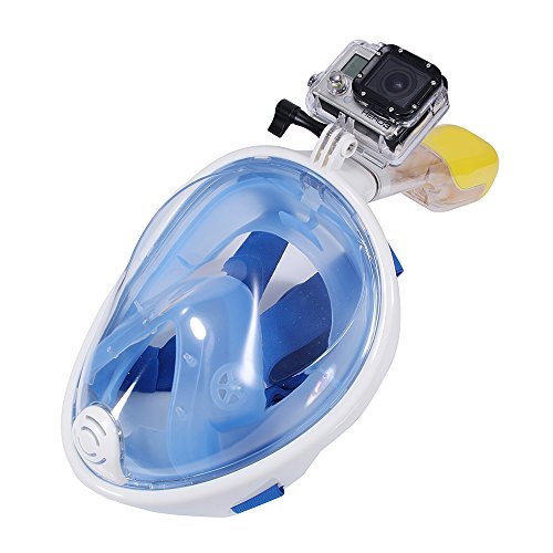 Maschera Subacquea Antiappannante Antiperdita--NEOpine Snorkeling Mask Full Face 180° Visione Sistema DRY DOP BLU L