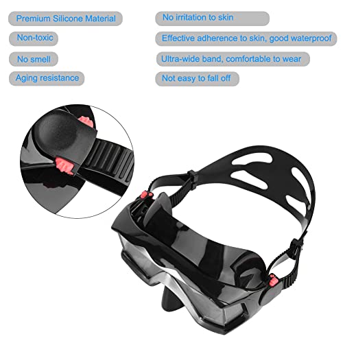 Cinturino regolabile veloce - Il cinturino in silicone morbido ad alta elasticità installato sulla maschera subacquea per non spostare più cinghie sott'acqua. E il cricchetto con fibbia a cinghia liscia è facile e veloce da regolare, mentre la maschera da snorkeling è sul viso, per giovani adulti e bambini in immersione