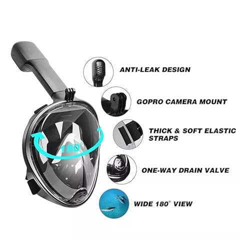 Questa maschera elimina l'inconveniente di tenere in bocca il respiratore, permettendoti di respirare naturalmente attraverso il naso e la bocca sott'acqua.