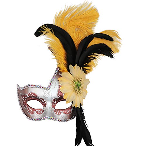 Maschera veneziana con piume e laccetto, per feste in maschera Brown