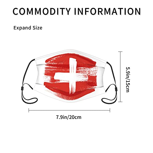 Maschera viso con bandiera della Svizzera riutilizzabile e lavabile per le donne uomo maschera sveglia regolabile confezione da 4 con filtro