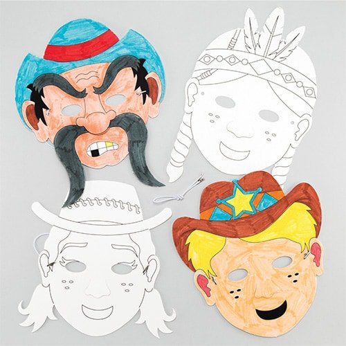 Maschere da Colorare Wild West per Bambini, da Creare e Decorare - Set per Creazioni e Carnevale per Bimbi (Confezione da 6)