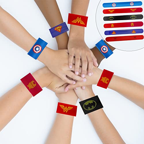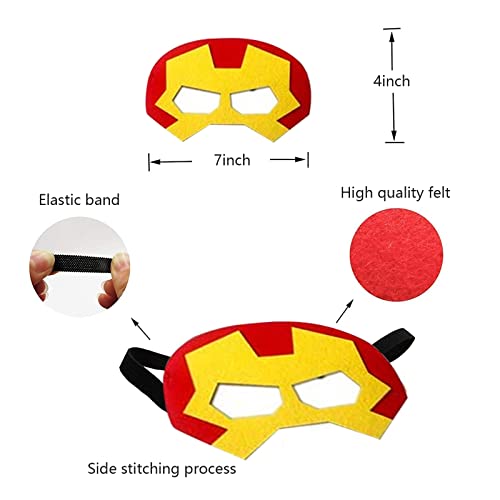 Maschere Supereroi Bambini Set,6 Pezzi Maschere Supereroi+6 Pezzi Braccialetti di Supereroi+5 Pezzi Supereroi Portachiavi+50PCS Supereroe Adesivi,Supereroe per feste,Supereroi Maschere Cosplay.