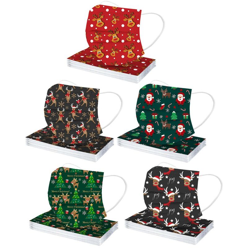 Chiusura ad anello per l'orecchio MASCHERA DI NATALE CON CINQUE ELEGANTI - Buone vacanze di Natale, goditi la vita! Ti forniamo 5 modelli eleganti di elementi a tema natalizio, che rendono il giorno di Natale più divertente. Abbiamo confezionato maschere da 50 pezzi in un pacchetto sottovuoto, 10 di ogni modello QUALITÀ AFFIDABILE - La maschera di Natale usa e getta è realizzata con filo nasale regolabile, robusti occhielli elastici per adattarsi facilmente a tutte le taglie, strettamente integrato con il viso, altro strati protettivi efficaci, con clip nasale regolabile, passanti elastici extra morbidi eliminano la pressione sulle orecchie per il massimo comfort MORBIDA CONFORTEVOLE - La maschera per il viso di Natale è realizzata in materiale non tessuto morbido, confortevole e traspirante, progettato con tre strati, il design della struttura pieghevole a 3 strati ti consente di respirare più agevolmente, Strato esterno: polipropilene spunbond;
