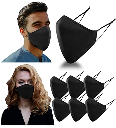 Maschere per il viso Maschera per il viso nera lavabile nel Regno Unito - Copertura protettiva in tessuto a 3 strati regolabile, traspirante riutilizzabile (confezione da 7)