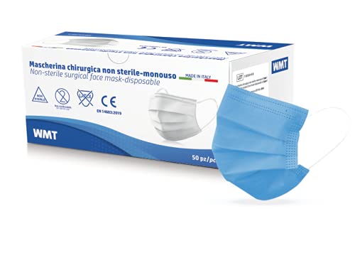 WMT Mascherina chirurgica a 3 strati, tipo 1 Classe 1, monouso- Conf.50 pz in pack 10 pz(azzurro, taglia bambino)