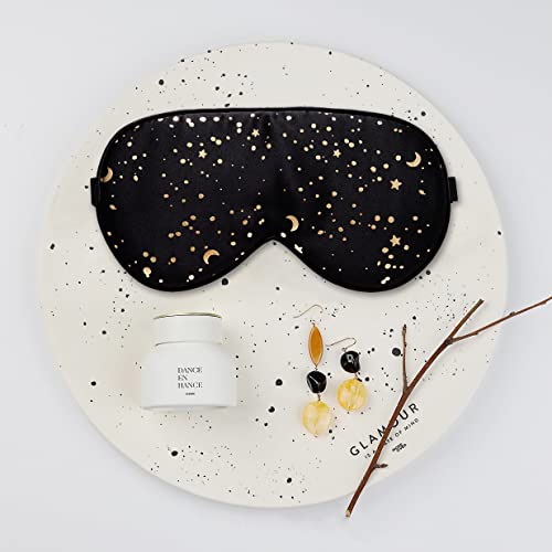 Mascherina per dormire, con cinghia regolabile, comoda e super morbida, in 100% seta, eccellente aiuto per dormire, motivo: luna dorata
