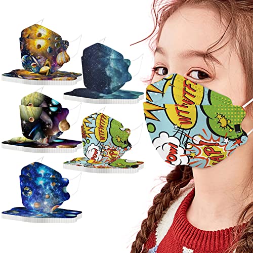 Mascherine Bambini Mascherine Colorate Certificate 4 Strati 50 Pezzi Tessuto Viso Mascherine Bambini Antipolvere Traspirante Durevole Perfetto per Viso Alta efficienza di filtrazione > 95% (C)