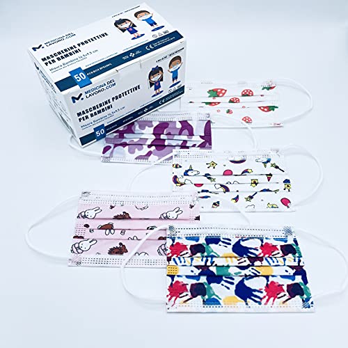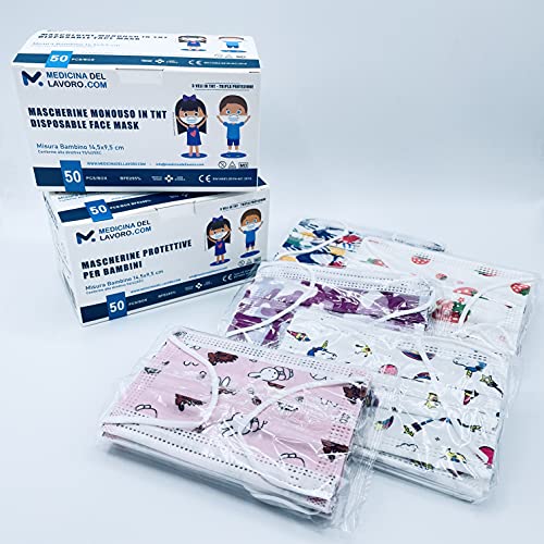 CERTIFICAZIONE EU: Queste maschere chirurgiche a 3 strati sono state testate e approvate da un organismo notificato dell'UE. 50 PEZZI DIMENSIONE BAMBINO: Il pacchetto comprende 50 mascherine chirurgiche a fantasia (10 x 5 fantasie come da foto) realizzate appositamente per il viso dei bambini. Realizzato in tessuto soffiato ad alta efficienza con una capacità di filtrazione del 95%