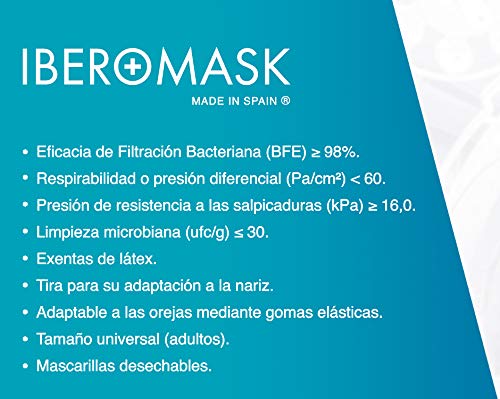 Mascherine Chirurgiche TIPO IIR IBEROMASK BFE > 99%, certificate CE EN14683: 2019