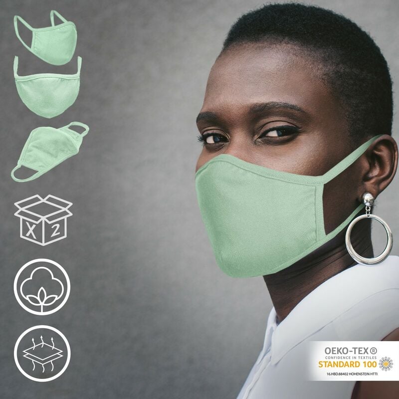 Oggigiorno, alla luce della nuova situazione epidemiologica a livello mondiale, la mascherina facciale è diventata uno degli elementi essenziali della casa. Indossare una mascherina medica o di cotone protegge voi e le persone intorno a voi. Questa mascherina multiuso è composta da doppio strato di tessuto di cotone non poroso e traspirante che ha una tasca per filtro, in modo da poter inserire il proprio filtro per una protezione aggiuntiva a tre strati. Mascherina protettiva aderente e di alta qualità in 100% cotone Adatta per l'uso quotidiano della gente comune Tasca interna progettata per inserire un filtro, un fazzoletto o un'altra forma di protezione aggiuntiva Taglia per adulti Set di 2 pezzi Colore: verde menta