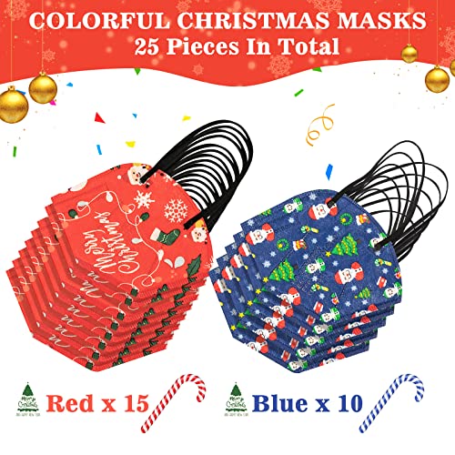 Mascherine FFP2 Adulti Colorate Natale 25 Pezzi, Certificate CE Mascherina Colorata per Adulti 5 Strati Traspirante, FFP2 MASKEN CE Zertifiziert, Atemschutzmaske FFP2 Einzeln Verpackt