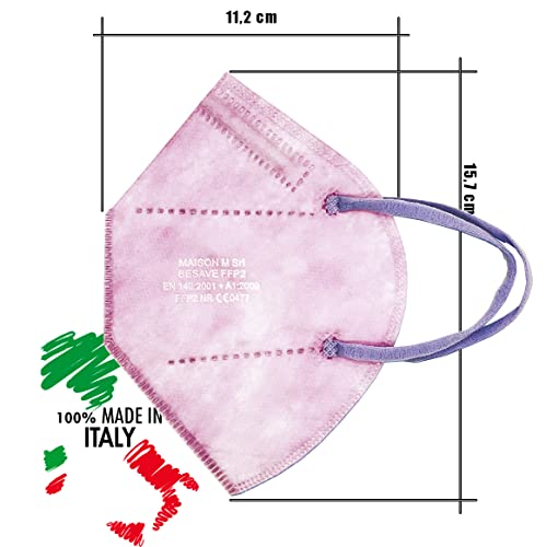 20 Mascherine FFP2 Certificate CE Colorate Glicine Italia 0477 Mascherina FFP2 Made in Italy 5 Strati PFE>94 con Certificazione Italiana| Maschera Antiappannamento Certificata e Sanificata|20 Pezzi